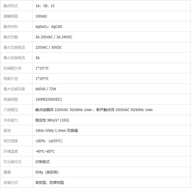 ◆ 3A触点切换能力 ◆ UL绝缘等级:F级 ◆ 印制板式引出端 ◆ 高灵敏型:线圈功耗200mW