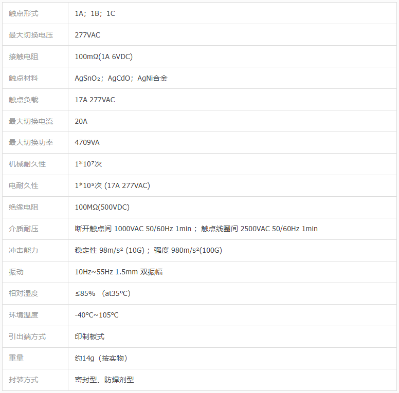 ◆ 小型功率继电器