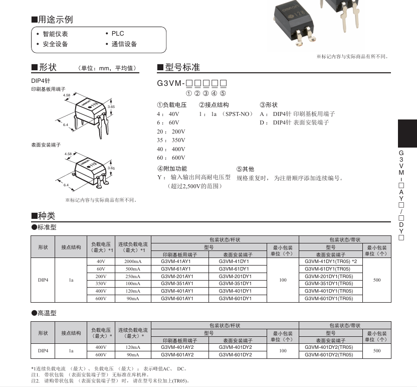 G3VM-□AY□ / □DY□ MOS FET继电器 DIP4针 小型&高绝缘型